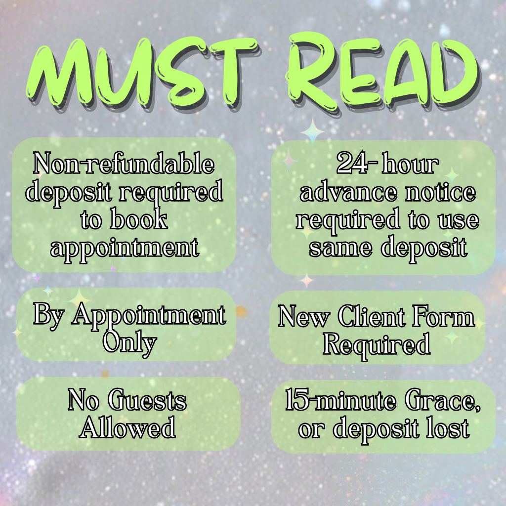 3. Once date/time and service(s) has been agreed upon you will receive text with information to pay deposit. Deposit within 2-hours to hold appointment.